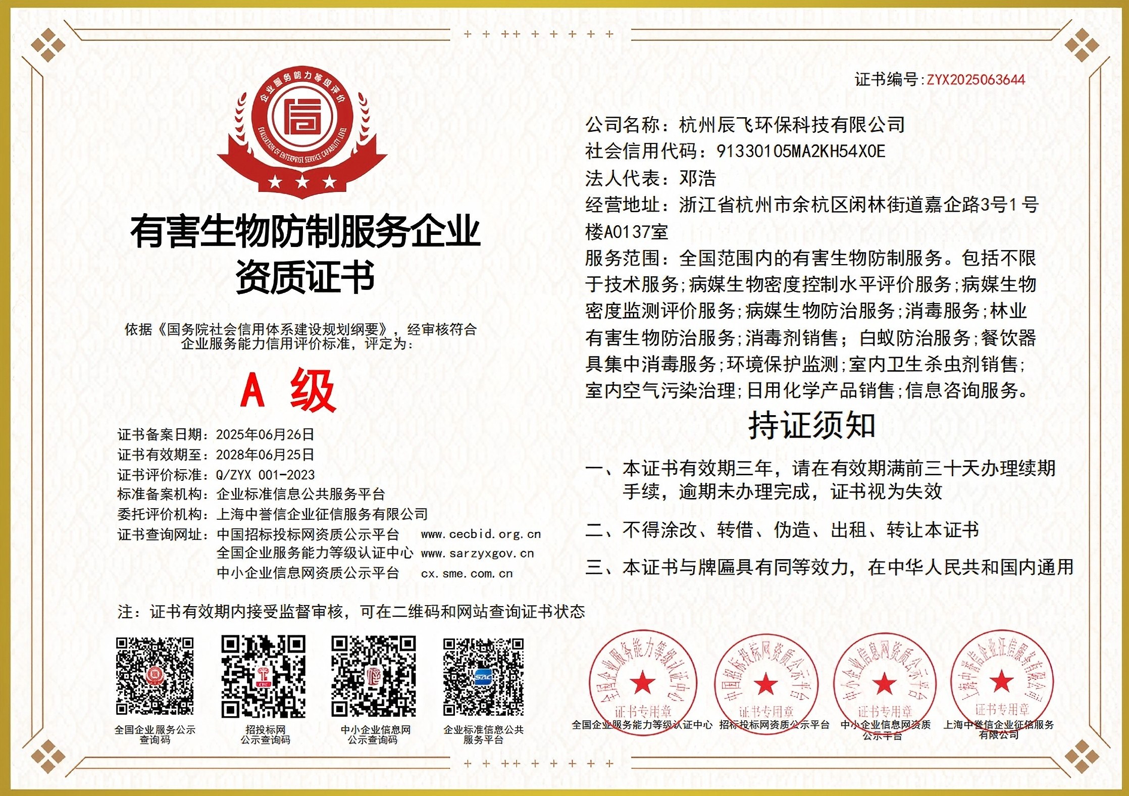 • 有害生物防制資質A級(2025-2028)